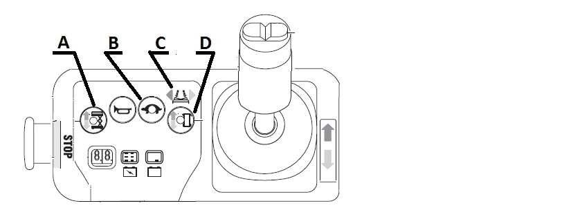 Który z oznaczonych piktogramów oznacza funkcję skrętu kół jezdnych podestu: