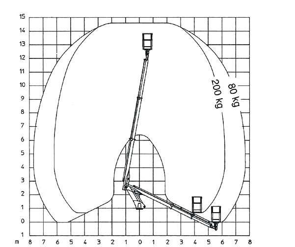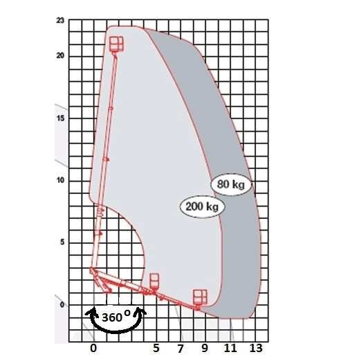maksymalny wysięg podestu obciążonego ładunkiem 80 kg - 13 m
