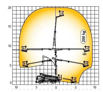 maksymalny wysięg podestu obciążonego ładunkiem 200 kg - 10 m