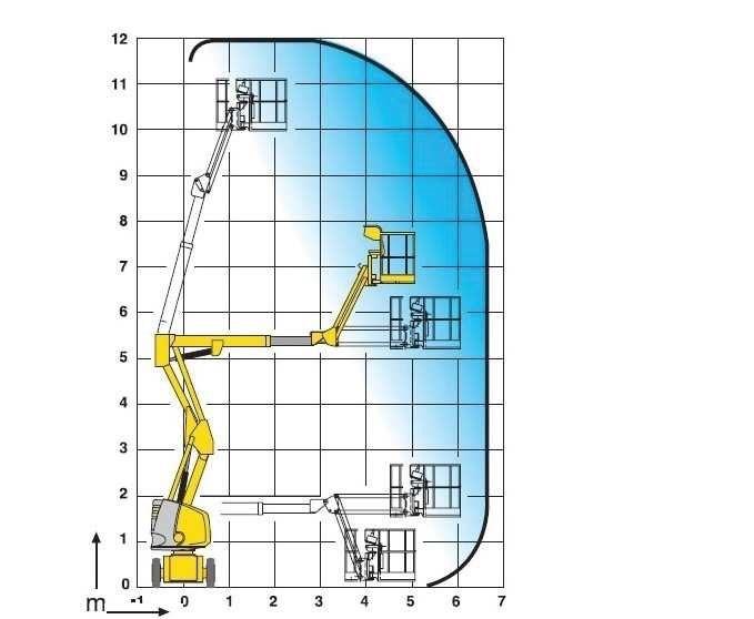 maksymalny wysięg podestu obciążonego ładunkiem 215 kg - 11,8 m