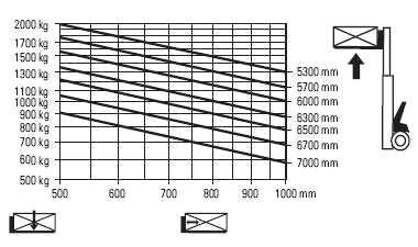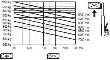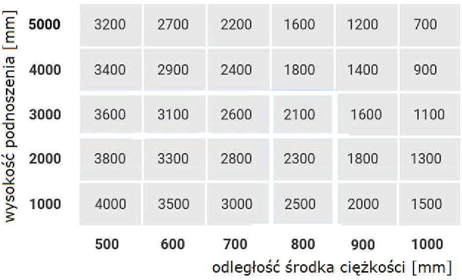 W oparciu o przedstawiony diagram udźwigu określ maksymalny udźwig wózka, podnoszącego ładunek na wysokość 5000 mm:
